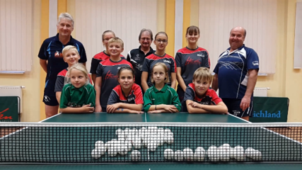 Germania Neuendorf - der TT-Nachwuchs mit Trainern gratuliert zum Stiftungs-Geburtstag