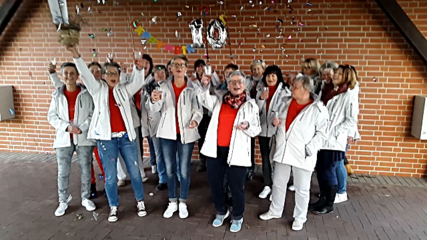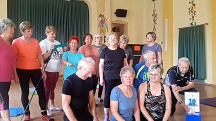 Die Senioren-Sportgruppe Neuendorf hat zum Gratulieren Aufstellung genommen ...